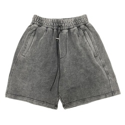 شورتات رياضية للرجال بشعار مخصص مرصعة بالحمض قطن مغسول لكرة السلة بنمط الركض في الشارع ملابس شحن جري بخصر مرن